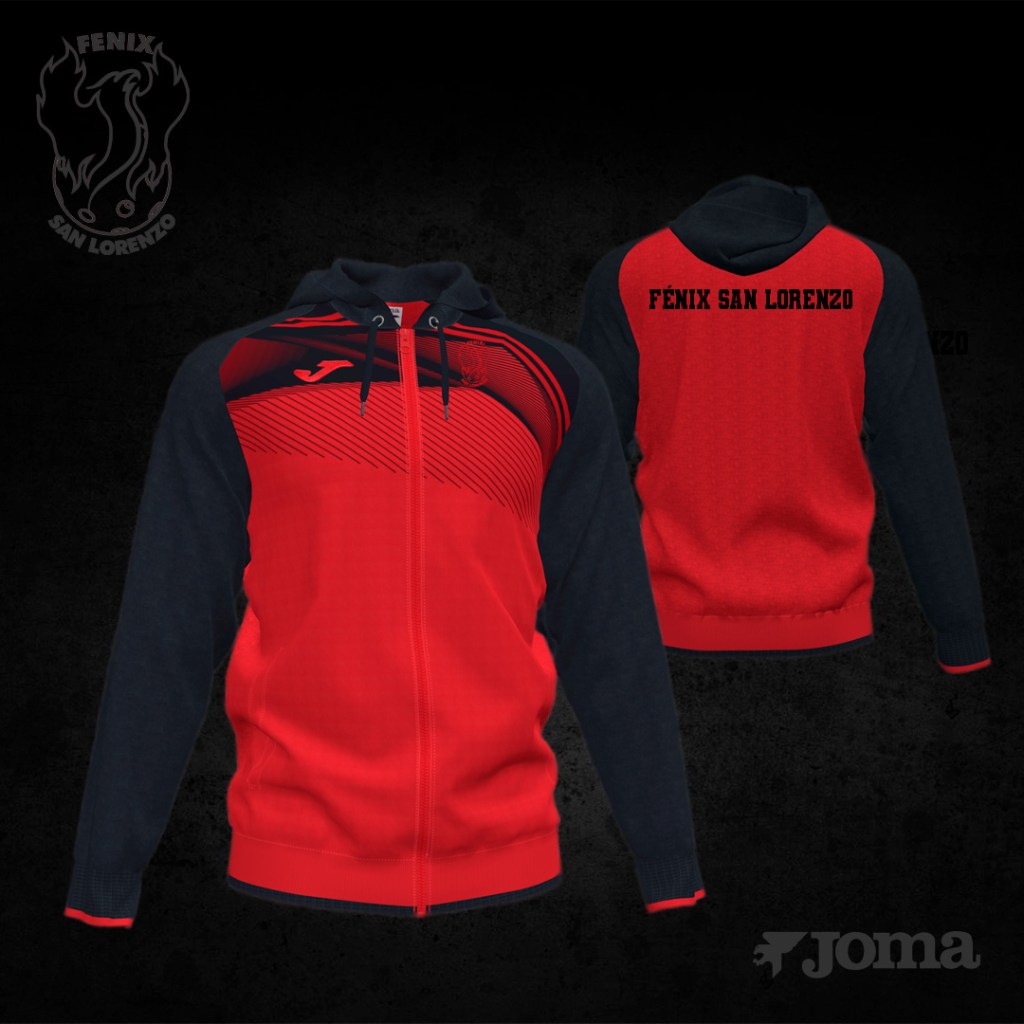 El segundo es una sudadera, en concreto la Supernova II de JOMA. Viene con capucha, cremallera y sublimación frontal. Además lleva estampado el logo de Fénix San Lorenzo en el pecho y el nombre del Club en la parte posterior. La verdad es que el diseño nos ha gustado mucho.