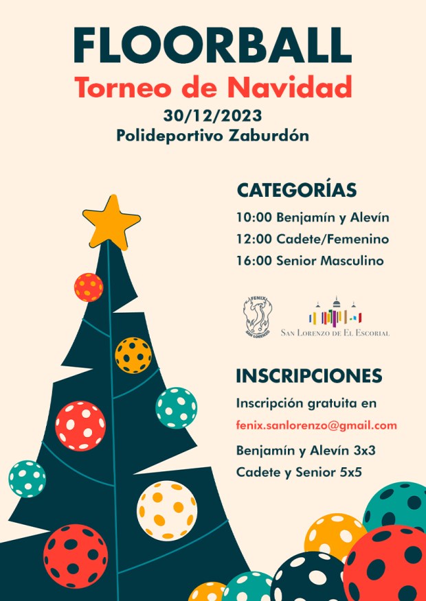 El próximo sábado 30 de diciembre organizamos la duodécima edición del Torneo de Floorball de Navidad en San Lorenzo de El Escorial. Un encuentro con el que os invitamos a despedir el 2023 mientras bajamos los turrones practicando nuestro deporte favorito.